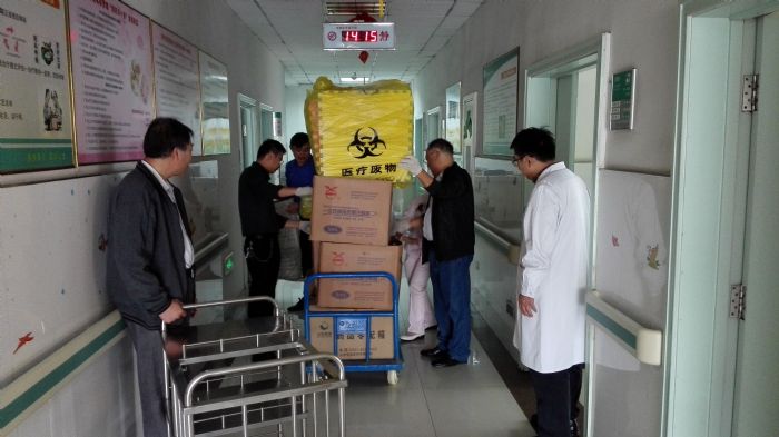 機(jī)關(guān)、后勤黨支部成員在小兒科醫(yī)護(hù)人員的配合下,先把醫(yī)療設(shè)備、床單被褥、書籍資料、水壺臉盆、電腦打印機(jī)等物品一一歸類,然后兩三個人一組,使用小推車或者徒手分類別搬運(yùn)。人多力量大,一會功夫所有物品搬運(yùn)完畢。來到五官科病房樓,大家相互配合,先把設(shè)備、病床、櫥柜等重量級物品放到合適位置,接著又把臉盆、水桶、被褥等物品分類放好。